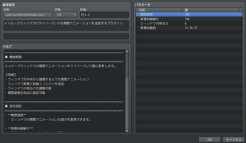 CyberpunkWindowShowAnimationFilter.js is a plugin for RPG Maker MZ that applies cyberpunk-style visual effects when the message window opens or closes.